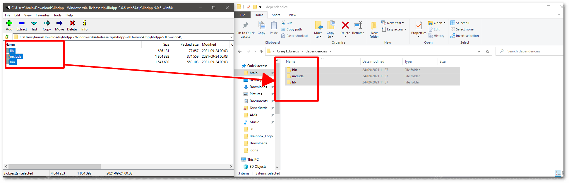 - Open the zip file you downloaded which contains the D++ dlls, include files and lib file. Drag and drop this to your local machine and make note of where you placed it. This location will be important in later steps.