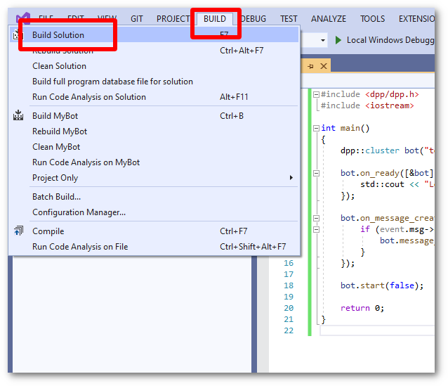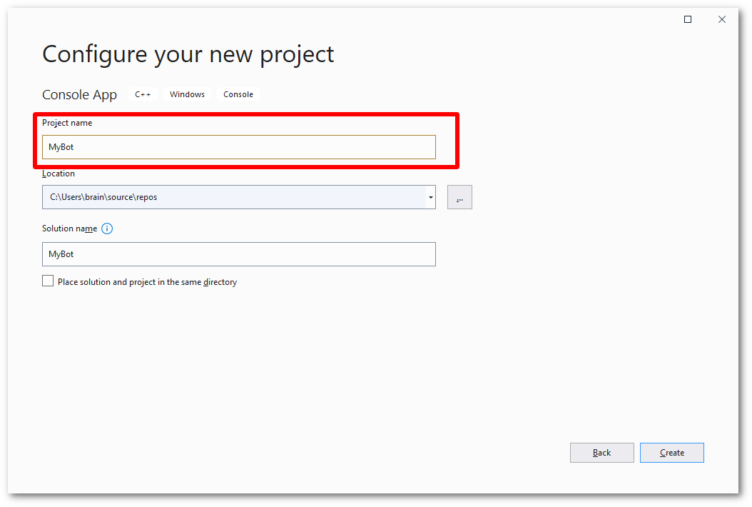 To create a basic bot using Visual Studio 2019, follow the steps below to create a working skeleton project you can build upon. These instructions should work (but are currently untested) on versions of Visual Studio newer than 2019.