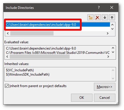 - Click 'edit' when prompted to edit the include paths section. Add the path to the include folder you extracted to your machine, which we took note of earlier. Note that it is important to add the dpp-9.0 folder, not any other folder, to this list: