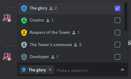 - This only works for the following types of select menus: user, role, mentionable, and channel. The default type of a select menu (as shown in this page) does not work for this, as that supports a "placeholder".