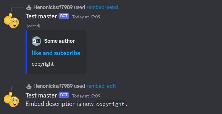 "Edit an embed sent by the bot", bot.me.id);