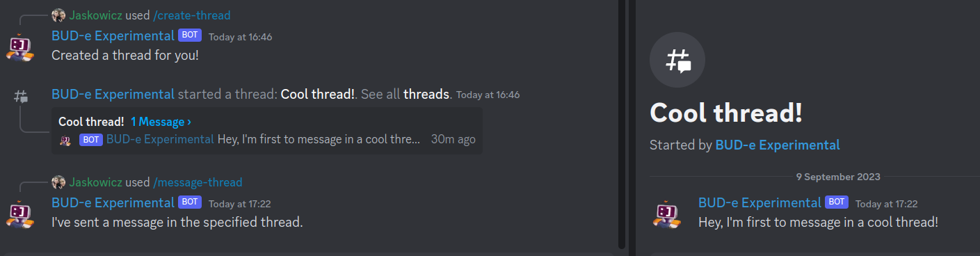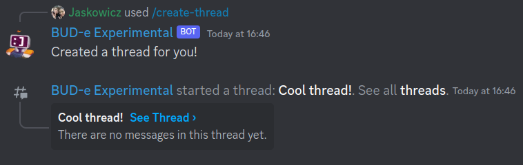 Those of you who are familar with sending messages in regular channels may have also noticed that sending messages to threads is the same as sending a general message. This is because threads are basically channels with a couple more features!